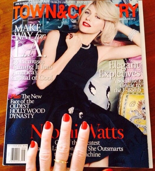 Needless to say, I didn’t have the same level of editorial control at Town & Country as I did at The Goldwyn Bugle. At that level, there’s a lot more cooks in the kitchen, advertisers to satisfy and a carefully crafted image to uphold.